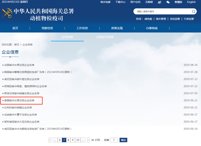 进口的新鲜榴莲需来自经海关总署注册登记的果园和包装厂,可在“动植物检疫司”→“企业信息”→“泰国输华水果注册企业名单”中查询泰国榴莲输华注册包装厂名单和输华注册果园,也可复制以下链接到浏览器打开查询:http://dzs.customs.gov.cn/dzs/2747042/2754240index.html。