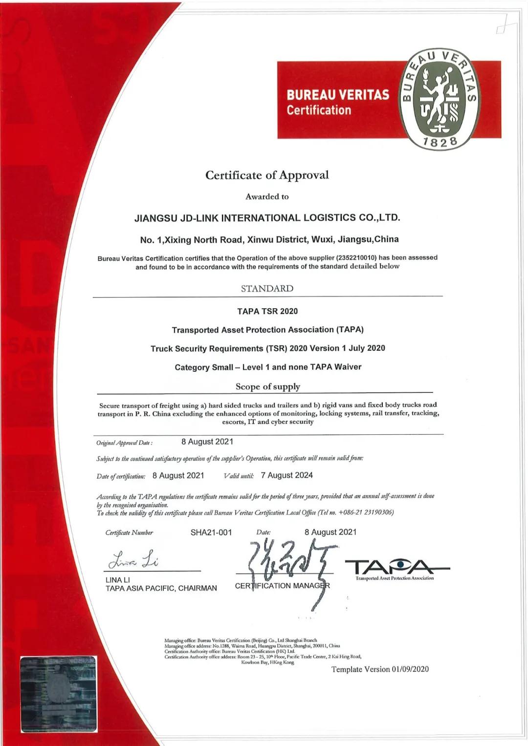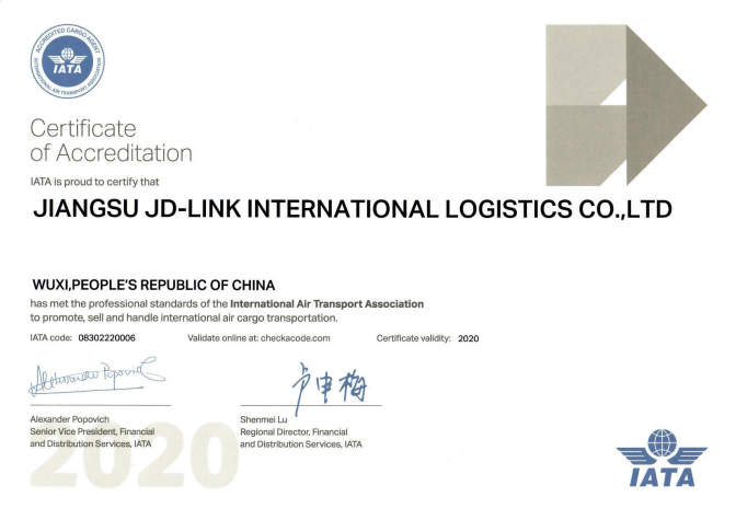 Jiangsu JD-Link International Logistics Co., Ltd. is one of the top 100 companies in Chinese forwarding industry as well as the top 50 companies in Chinese private enterprises. lt is a first-class freight forwarding agent authenticated by China Air Transport Association(CATA),and a member enterprise of both World Cargo Alliance(WCA) and China International Freight Forwarders Association(CIFA).